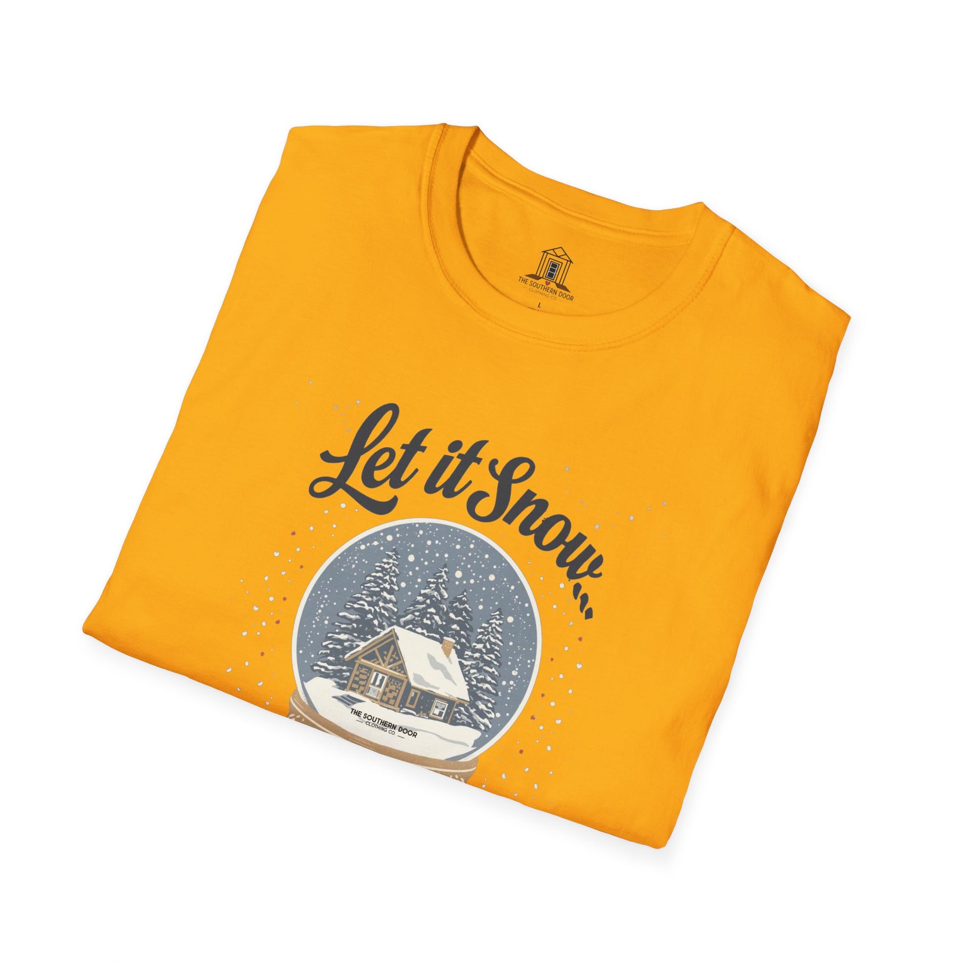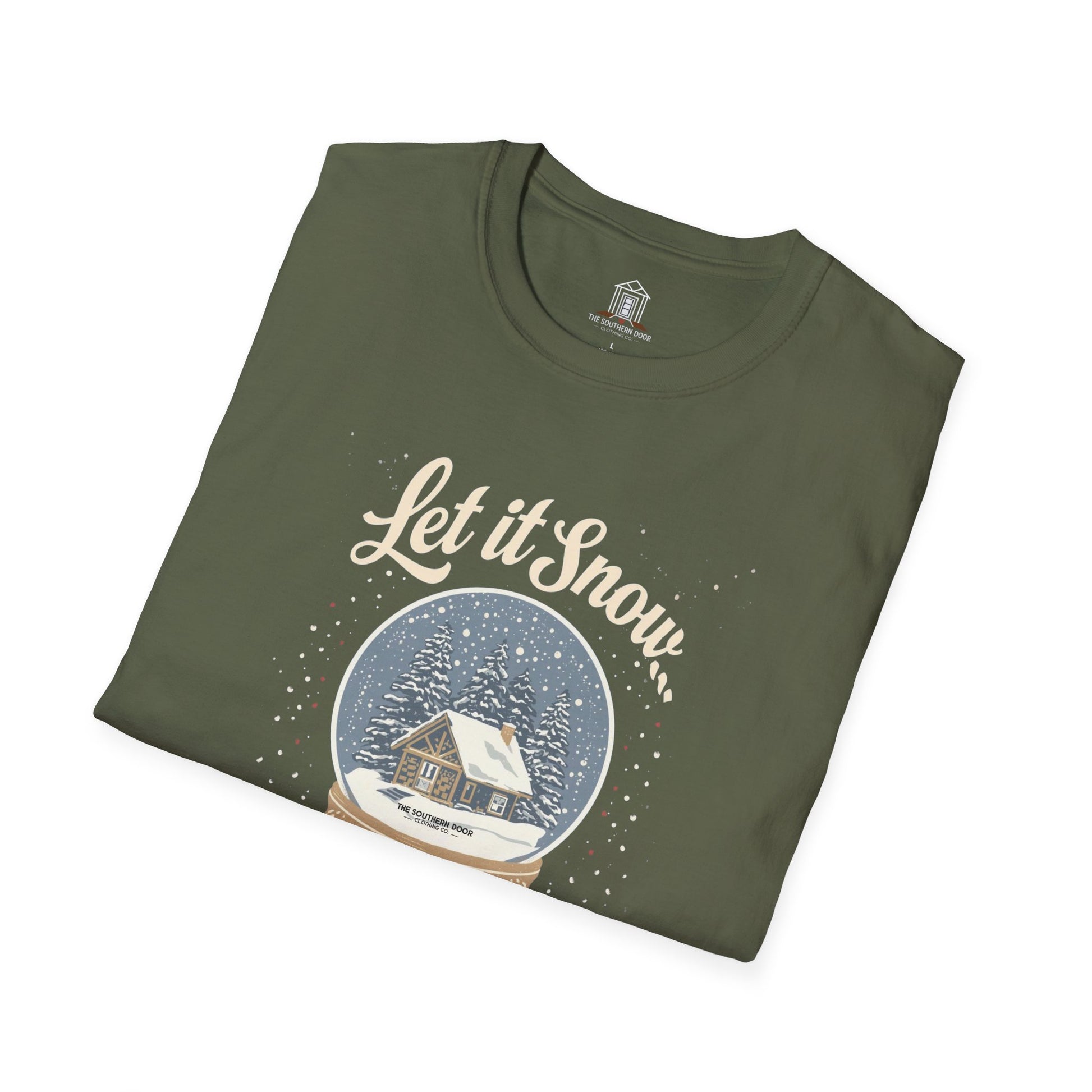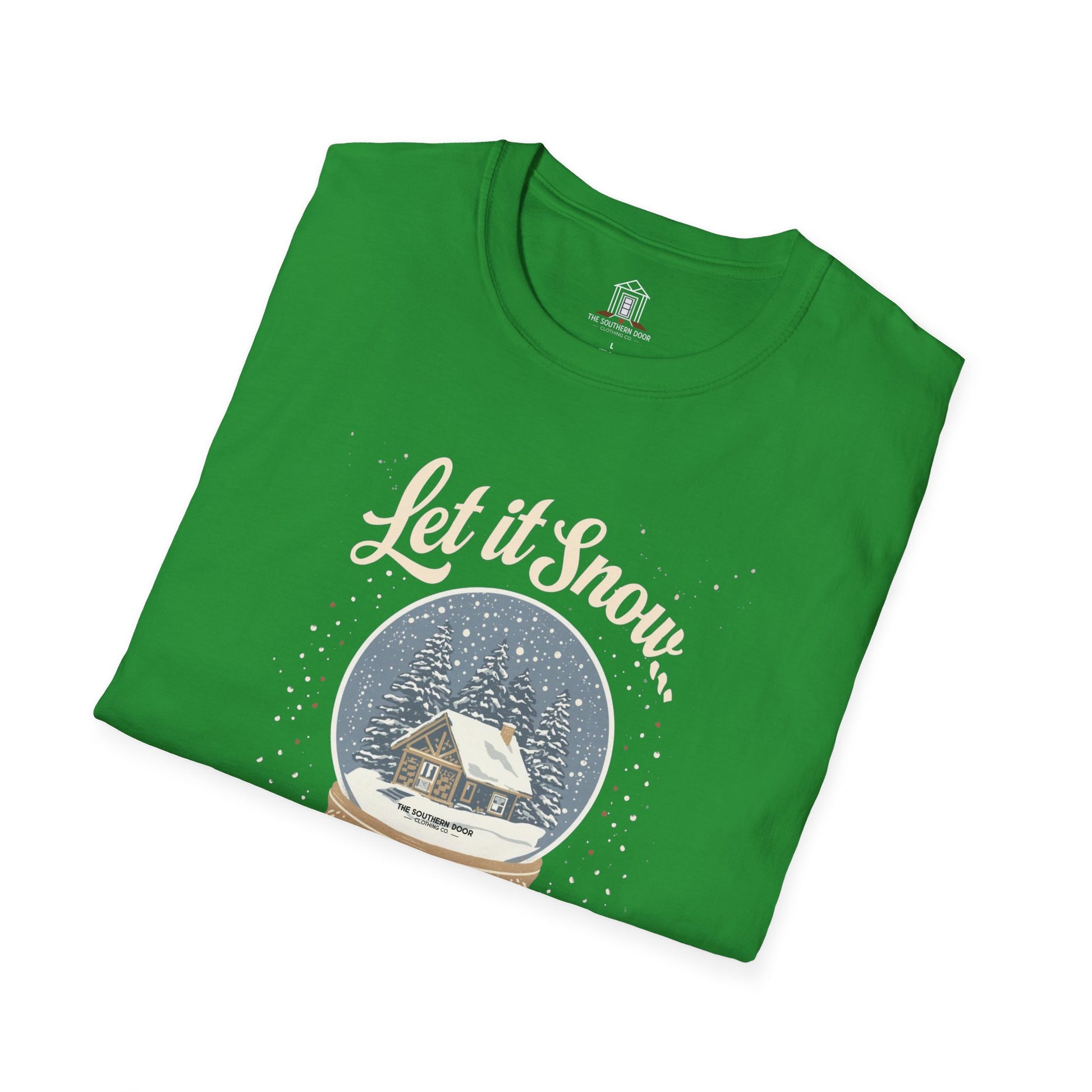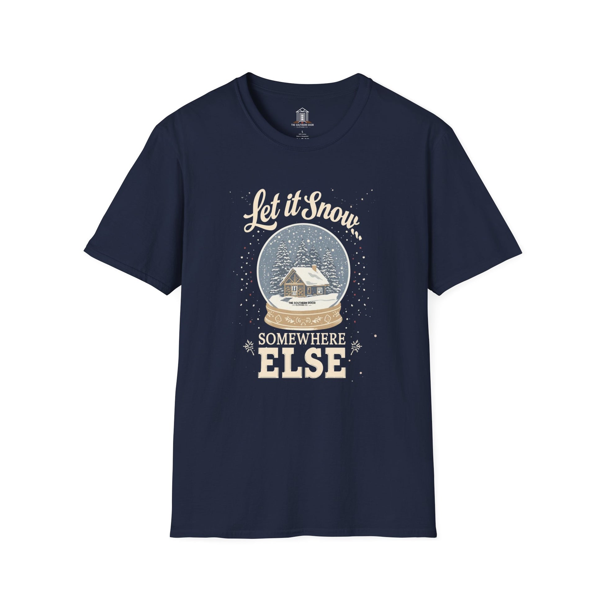 For those of us who like our Christmas white—but only on postcards. This “Let It Snow… Somewhere Else” tee captures the Southern spirit of mild winters, cozy porches, and snow-free holidays. Featuring a vintage-style snow globe design, it’s perfect for anyone who prefers sweet tea over snow shovels. Soft, witty, and just a little rebellious—because down here, a flurry is plenty.