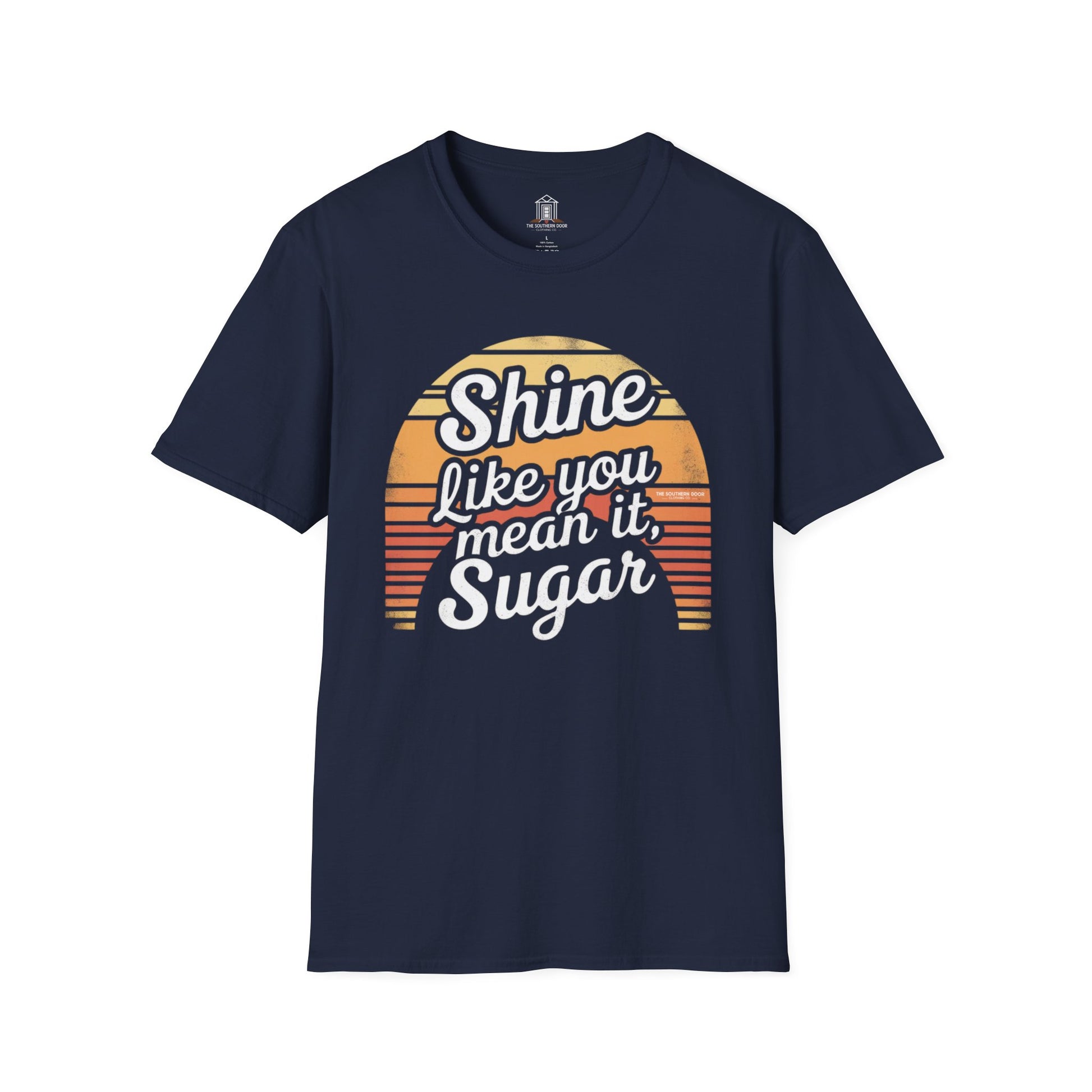 A little encouragement never hurt nobody—especially when it comes with Southern sweetness. “Shine Like You Mean It, Sugar” brings vintage warmth and porch-light charm to your day, reminding everyone to sparkle with heart. Whether you’re chasing dreams, sunshine, or just another cup of coffee, this tee is your wearable pep talk with a wink.